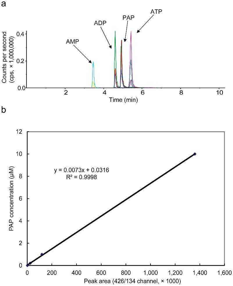 LC-MS/MS analysis of PAP, AMP, ADP, and ATP.