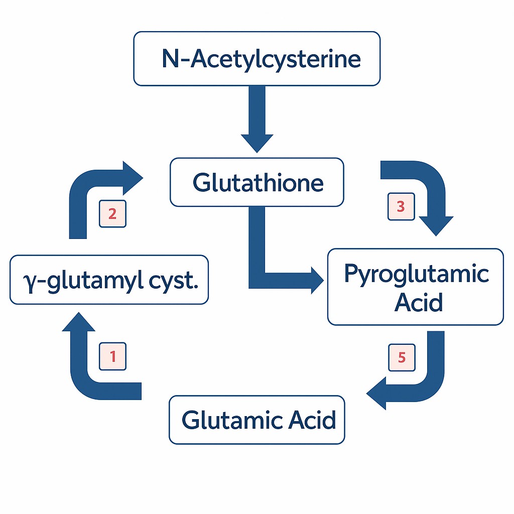 Pyroglutamic Acid: Elevated levels may be associated with increased oxidative demands or exposure to environmental factors such as mycotoxins]. Glycine limitation may also contribute to inefficient GSH turnover.