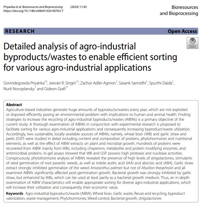 - Detailed analysis of agro-industrial byproducts/wastes to enable efficient sorting for various agro-industrial applications. Bioresources and Bioprocessing, 2024. https://doi.org/10.1186/s40643-024-00763-7