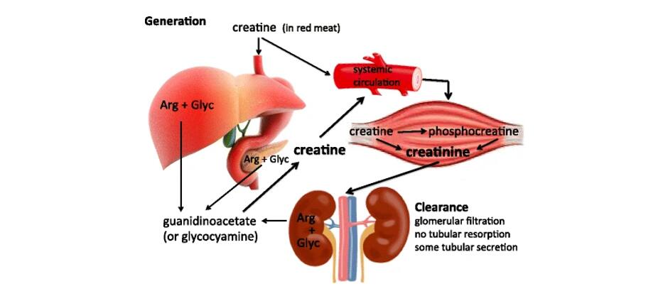 Generation and clearance of creatinine