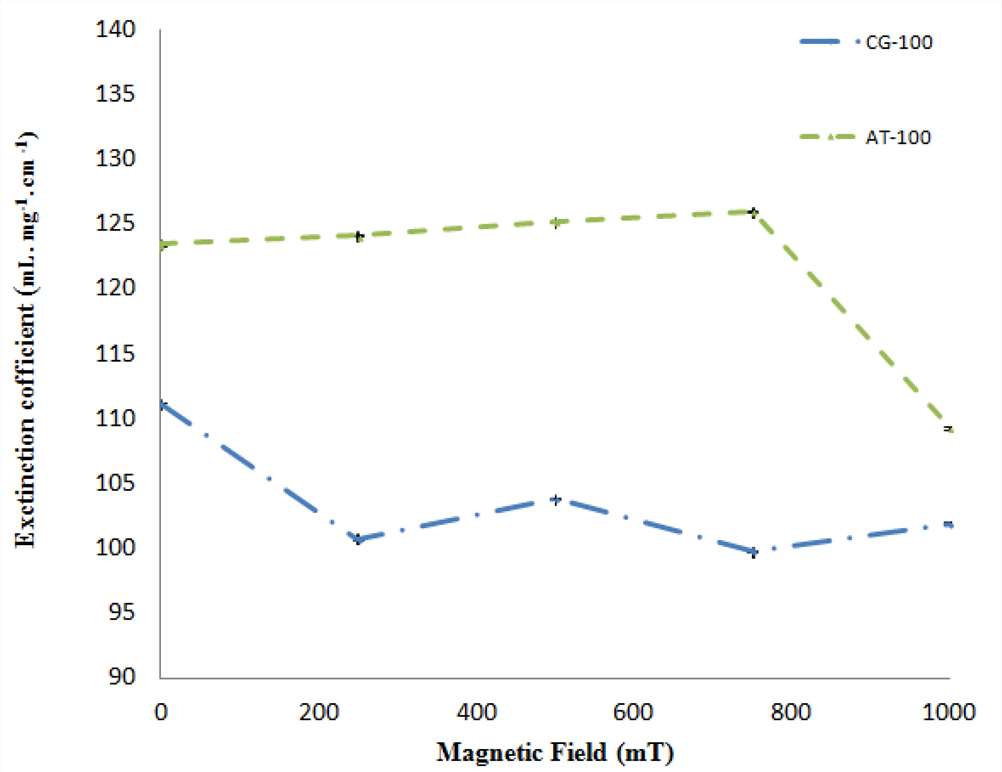 Fig. 1. Extinction coefficients of the two DNA samples. (Banihashemian S. M., et al., 2013)