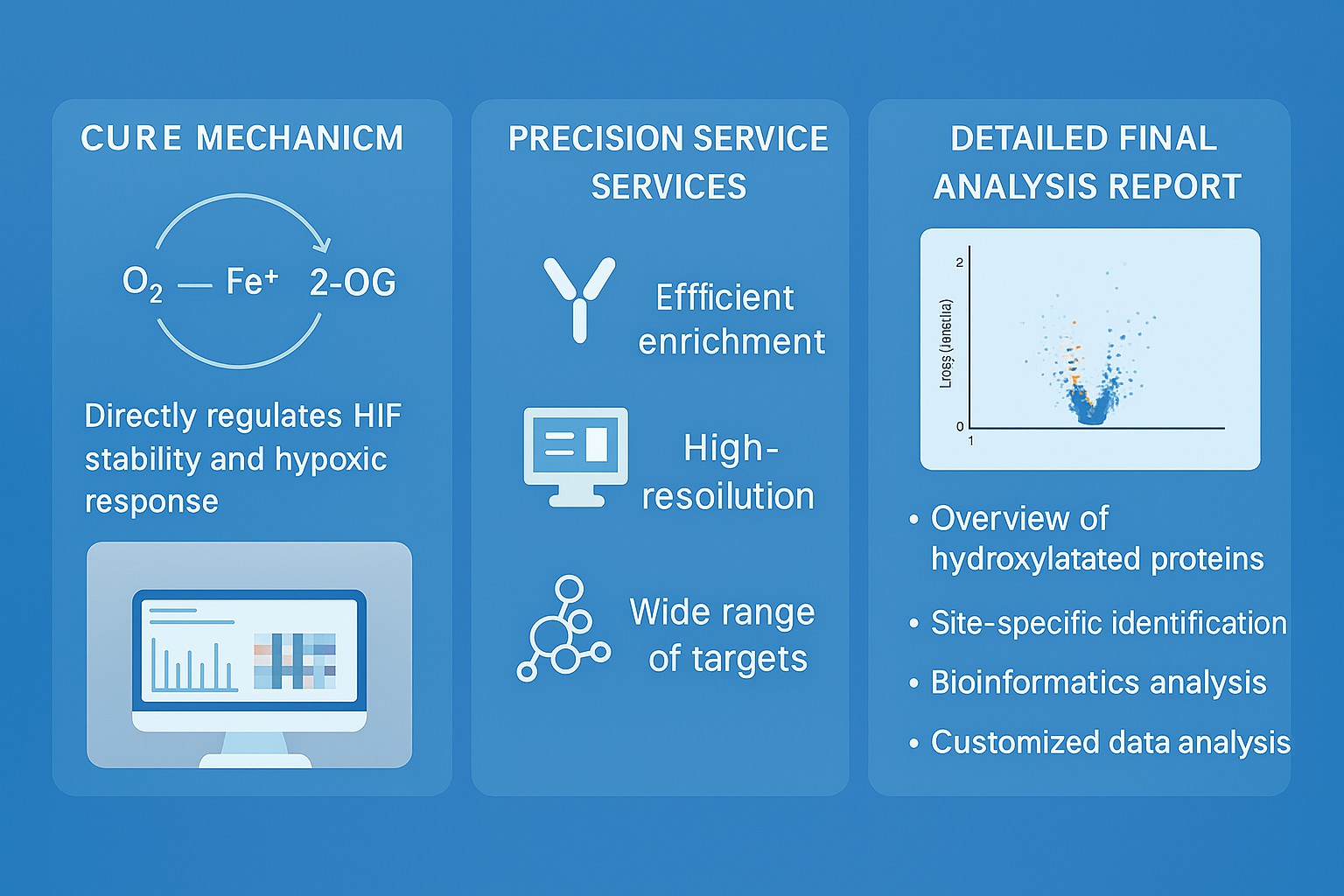 Hydroxylation is an important post-translational modification of proteins, and its dysregulation is associated with collagen-related disorders, cancer, and hypoxia pathways. Systematic investigation of hydroxylated proteins is essential for understanding their biological and pathological functions. Our hydroxylation analysis service provides precise identification and quantification of hydroxylated peptides using high-resolution LC–MS/MS and immunoprecipitation enrichment. This service enables researchers to explore enzyme-specific hydroxylation events and uncover their biological significance across different models.