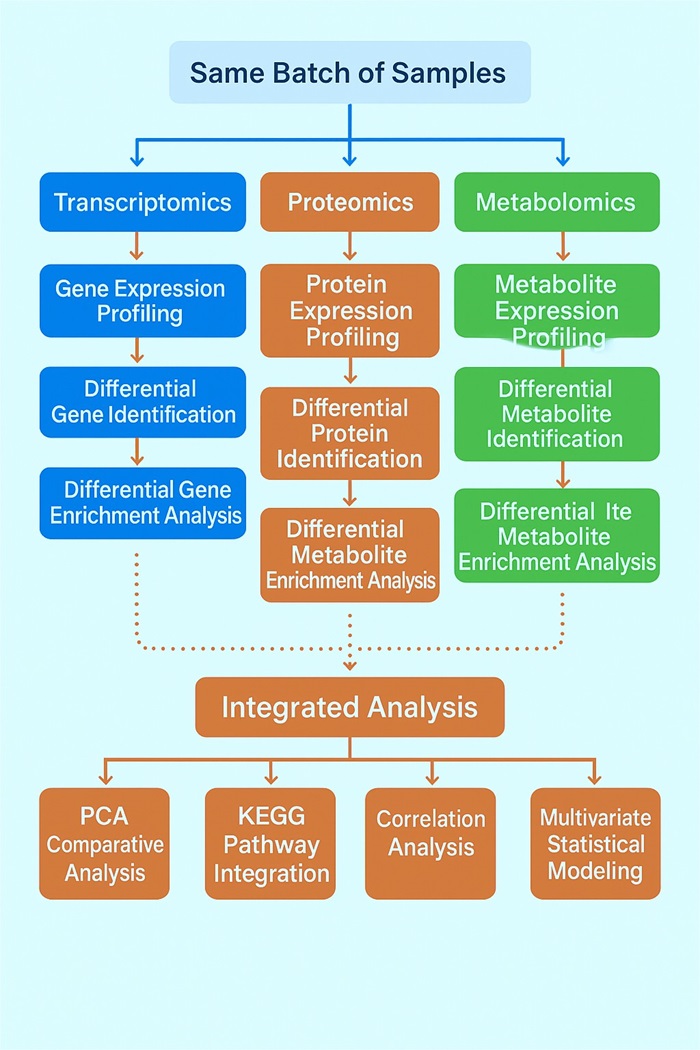 Integrated multiomics analysis supports diverse projects in plant, animal, biomedical, and pharmaceutical research. By combining transcriptomics, proteomics, and metabolomics, Creative Proteomics helps researchers uncover regulatory mechanisms, validate biomarkers, and generate high-value data for publication or product development.