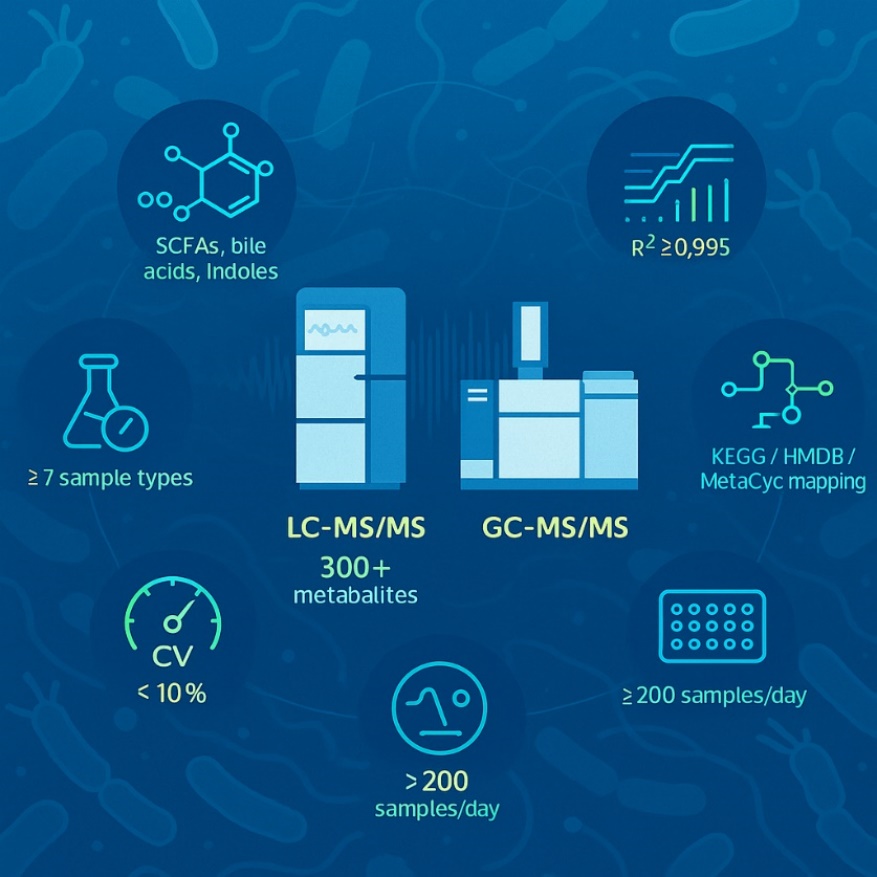 - SCIEX Triple Quad™ 6500+ (targeted panels for SCFAs, TMAO, bile acids, indoles)
