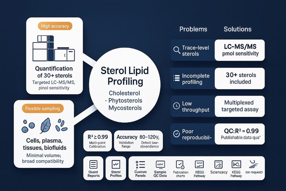 - High Coverage: We analyze over 30 different sterol lipids, including common animal sterols, plant sterols, and mycosterols, ensuring comprehensive lipid profiling.
