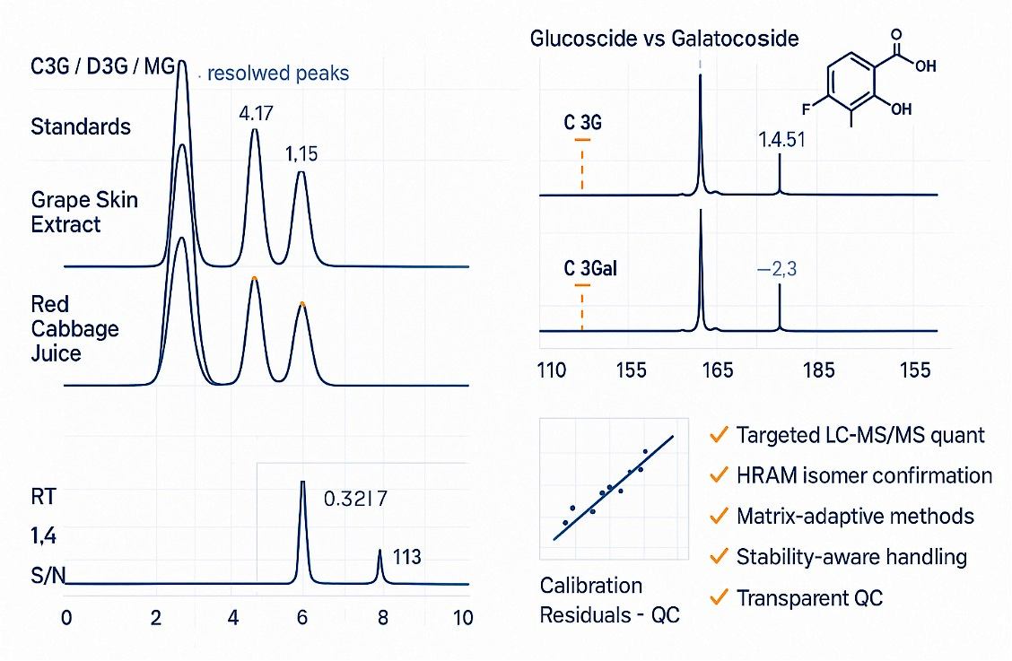 Precise profiling supports authenticity checks, cultivar screening, and process optimization in food and botanicals. Researchers also track anthocyanin dynamics to study stress responses and metabolic pathways. For product developers, reliable data informs formulation choices and shelf-life strategies.