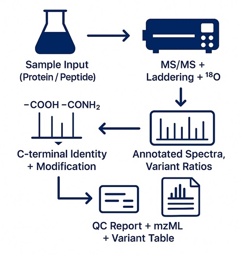 Yes. We use modification-aware workflows with derivatization-compatible MS and targeted transitions to clearly distinguish –COO⁻, –CONH₂, and esterified termini. Variant ratios can be provided when needed.