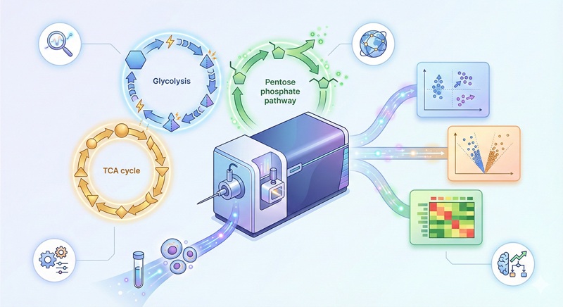 Central carbon metabolism analysis mainly studies metabolic activities in cells through metabolic flux analysis (MFA) technology. Among them, 13C-metabolic flux analysis (13C-MFA) is a commonly used method, which tracks the isotopic distribution of metabolites by labeling substrates (such as [1,2-¹³C] glucose) to estimate metabolic flux. With LC-MS/MS, metabolic fluxes can be quantified, pathway activities can be determined, as well as the contribution of different carbon sources to metabolic fluxes.