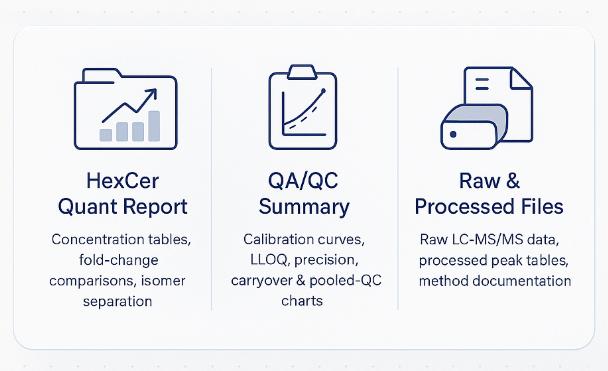 We implement matrix-optimized extraction protocols, internal standards, and ion suppression mitigation strategies to ensure reliable detection and quantitation of trace-level HexCer species.